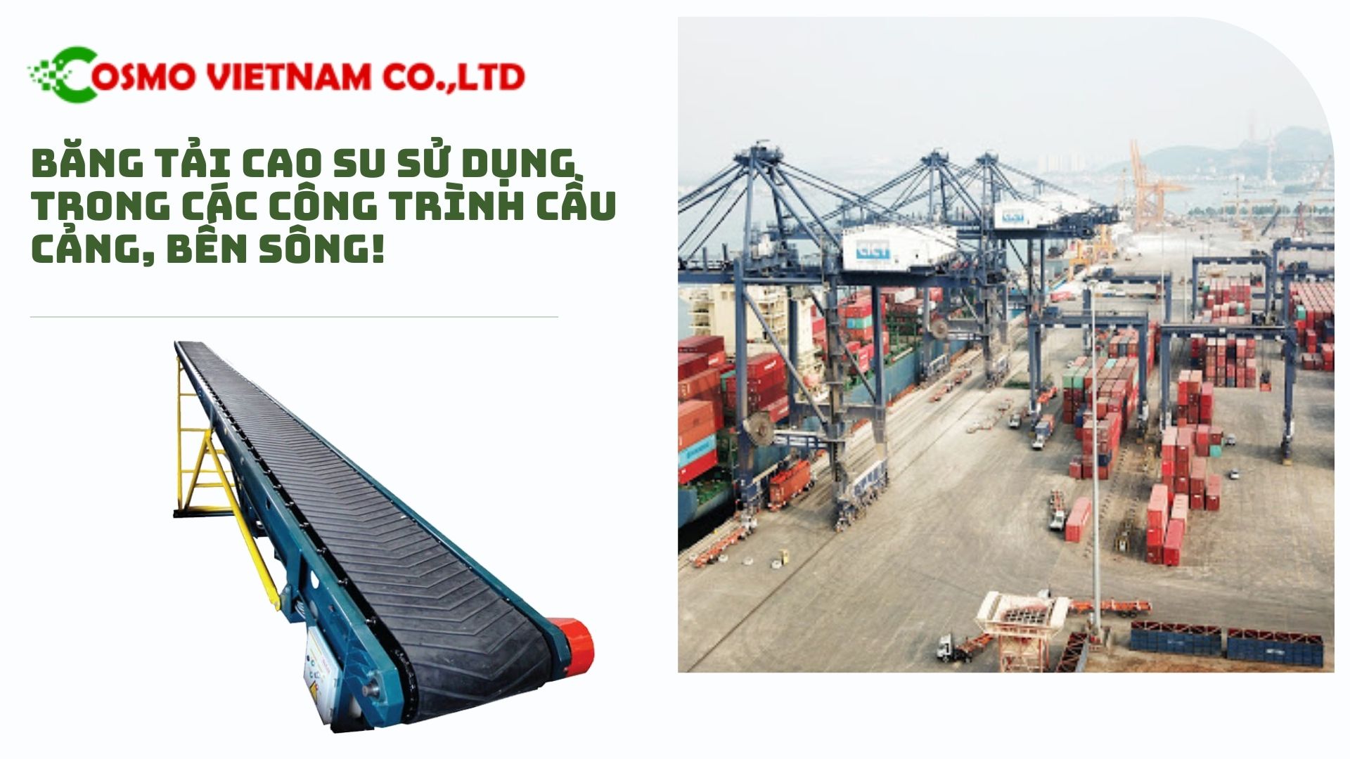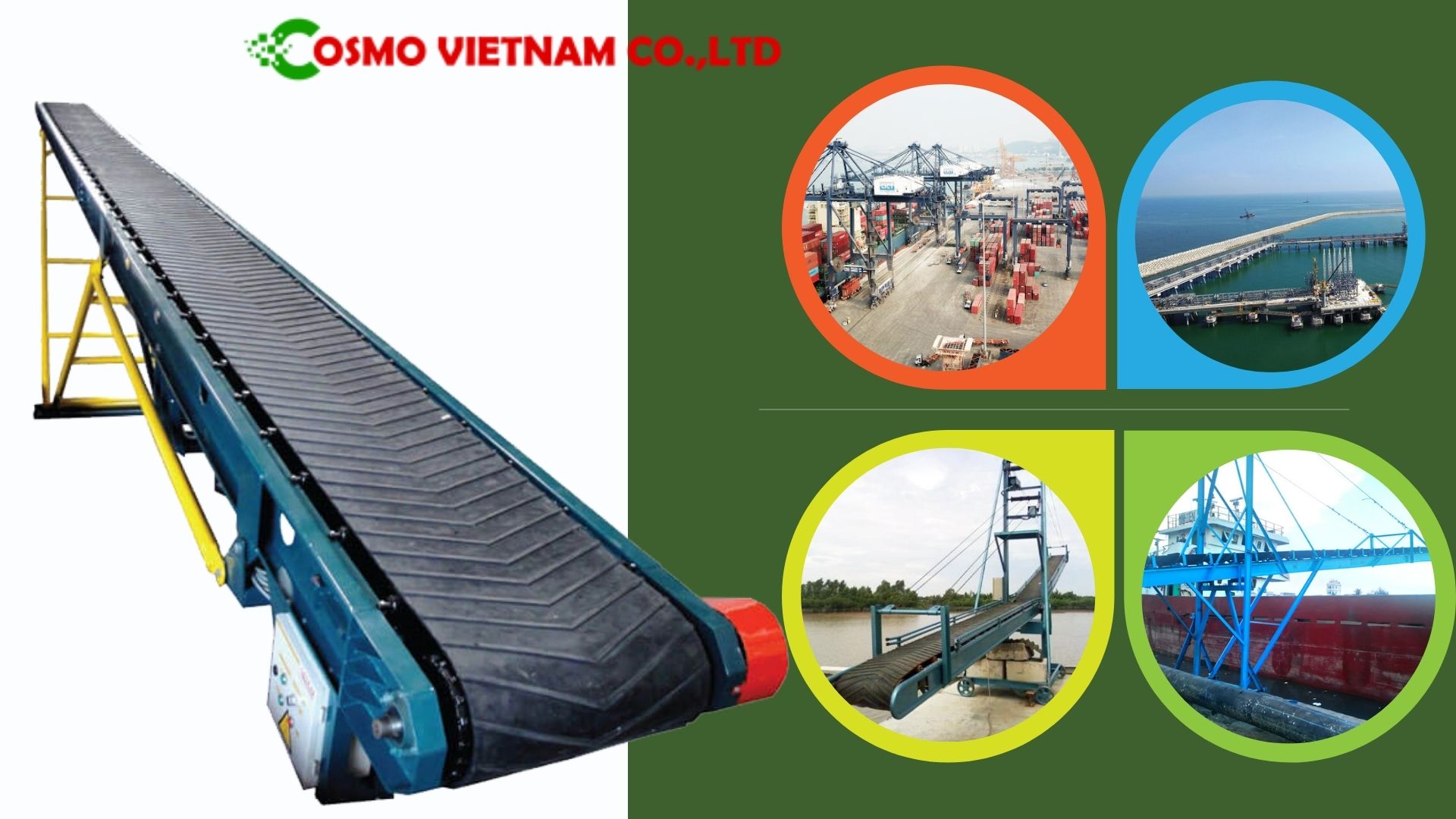 Đối với loại băng tải sử dụng tại cầu cảng, đặc biệt là những nơi dùng để vận chuyển cát, sỏi trong các ngành công nghiệp nghiền. Cũng được sử dụng rộng rãi cho việc chuyển các vật liệu khối hàng hoặc các sản phẩm sản xuất trong khai thác mỏ, xây dựng, ngành công nghiệp luyện kim và các ngành công nghiệp khác. Thì Cosmovina chúng tôi xin đưa ra sự tư vấn đó chính là “băng tải cao su”.
