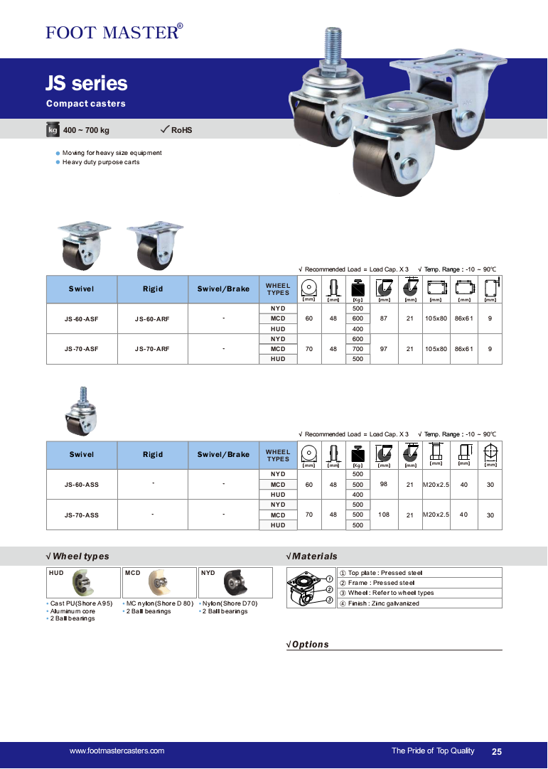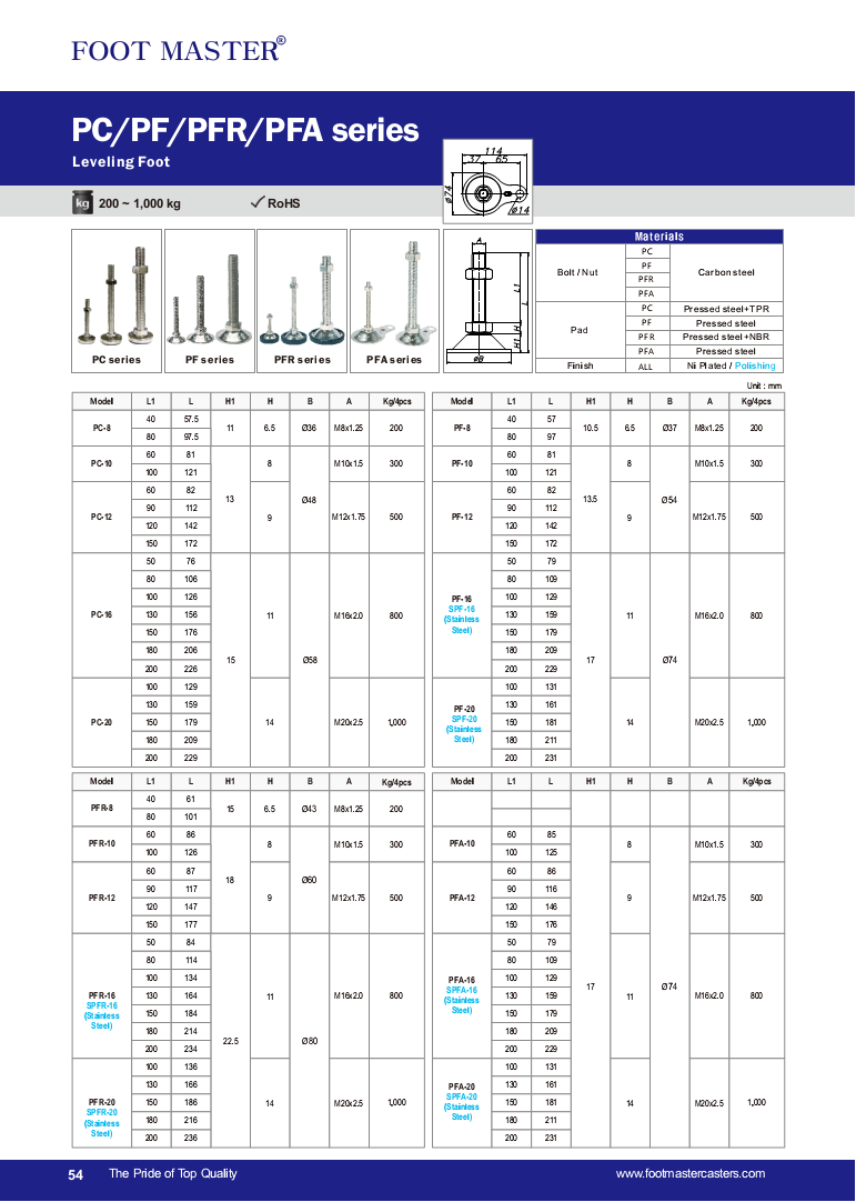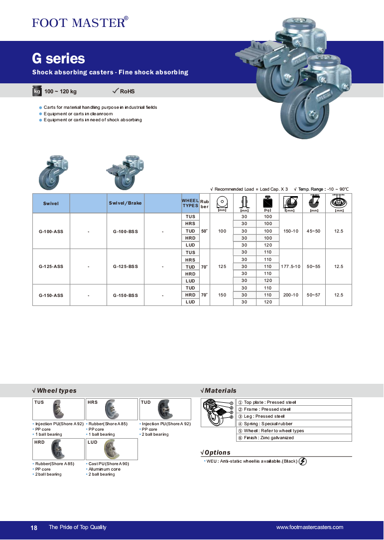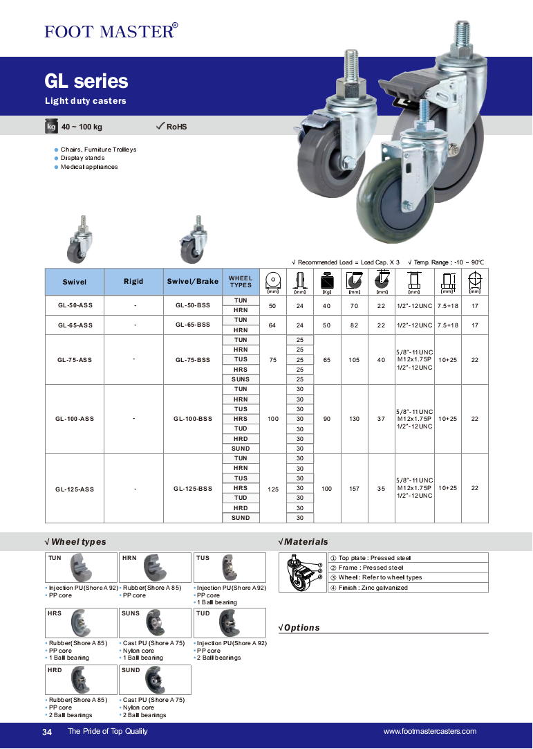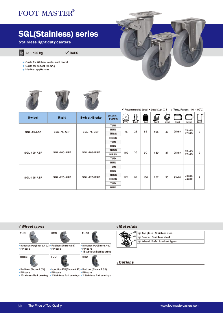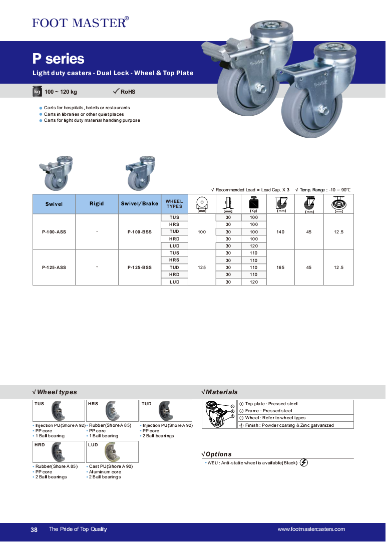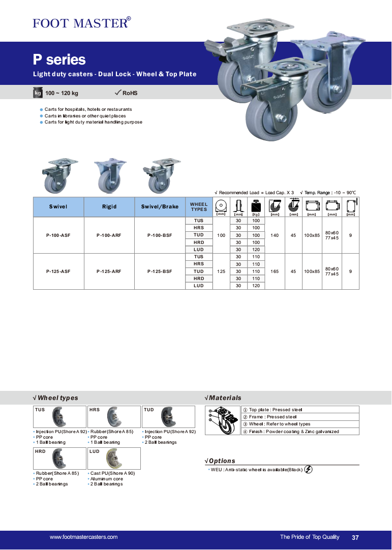 Bánh xe đẩy PL-100-ASF-LUD, PL-100-ARF-LUD, PL-100-BSF-LUD