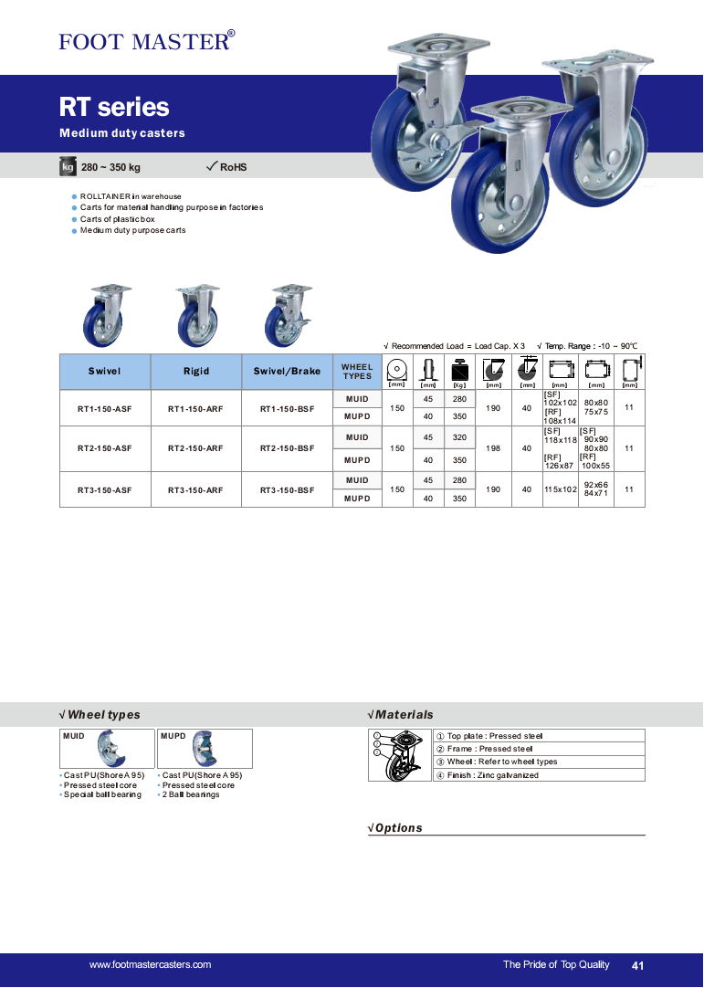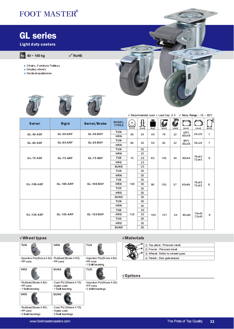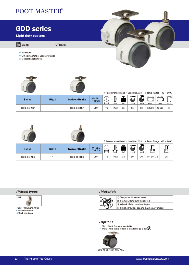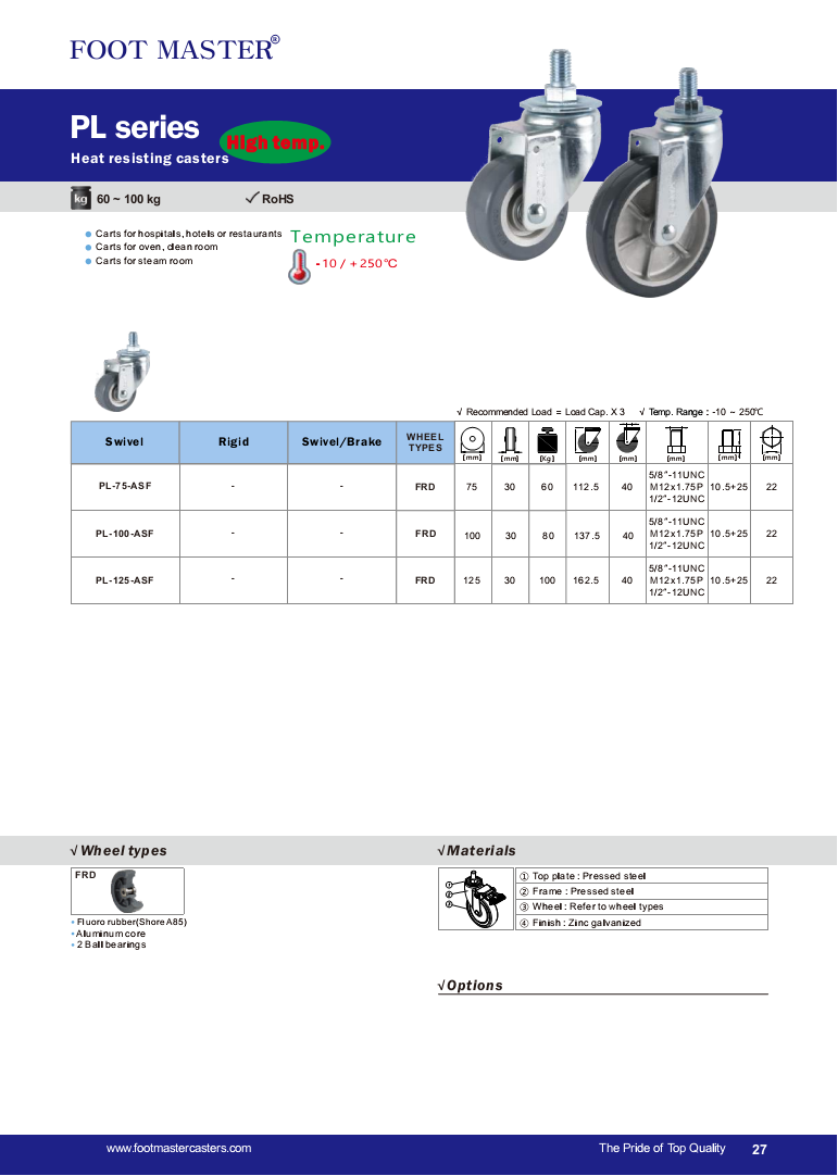 Bánh xe đẩy PL-100-ASF-LUD, PL-100-ARF-LUD, PL-100-BSF-LUD nhập khẩu chính hãng. Chất lượng cao, cung cấp với số lượng lớn, có bảo hành toàn quốc.