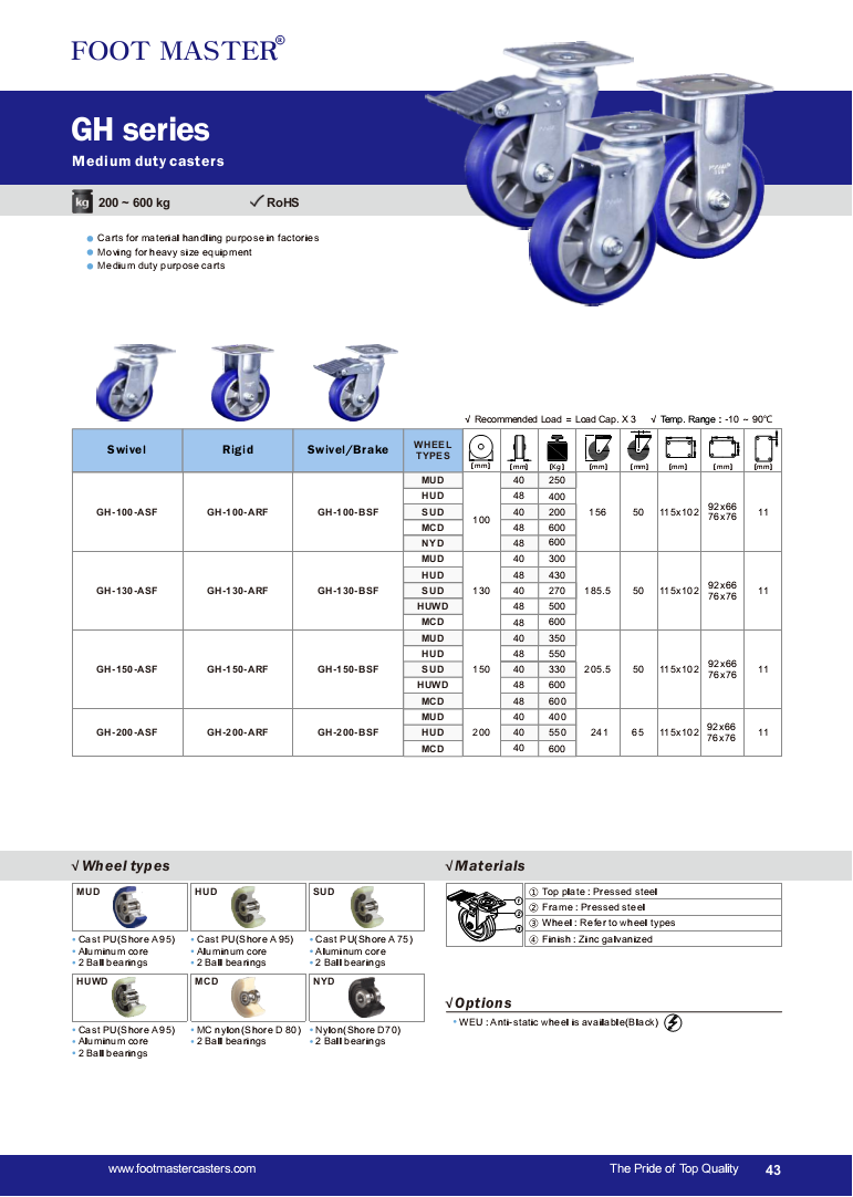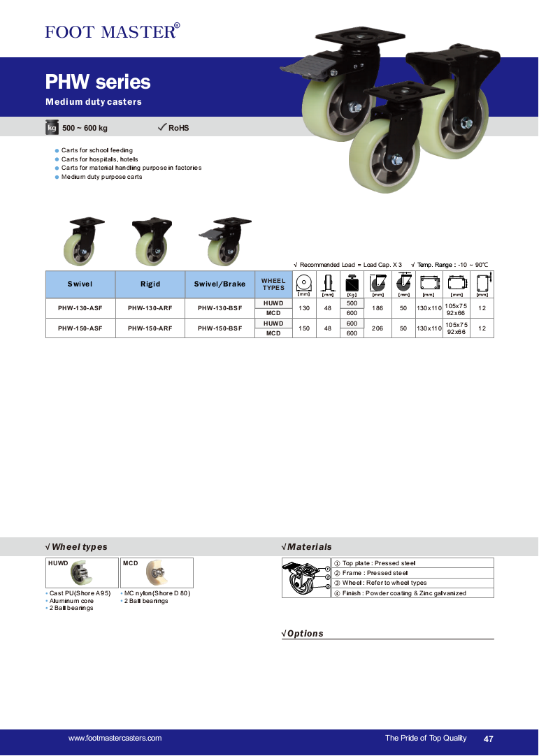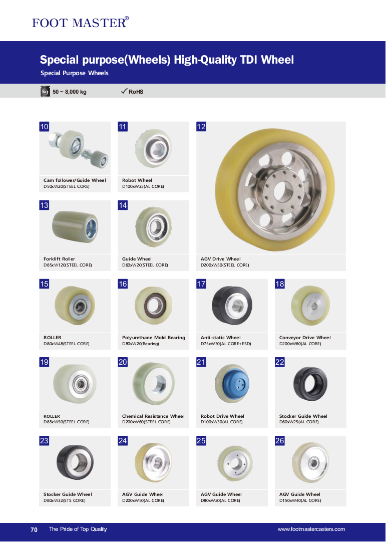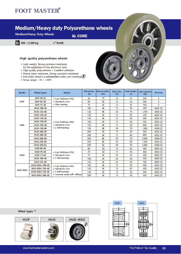 – Bánh xe: Lõi nhôm + khuôn uretan