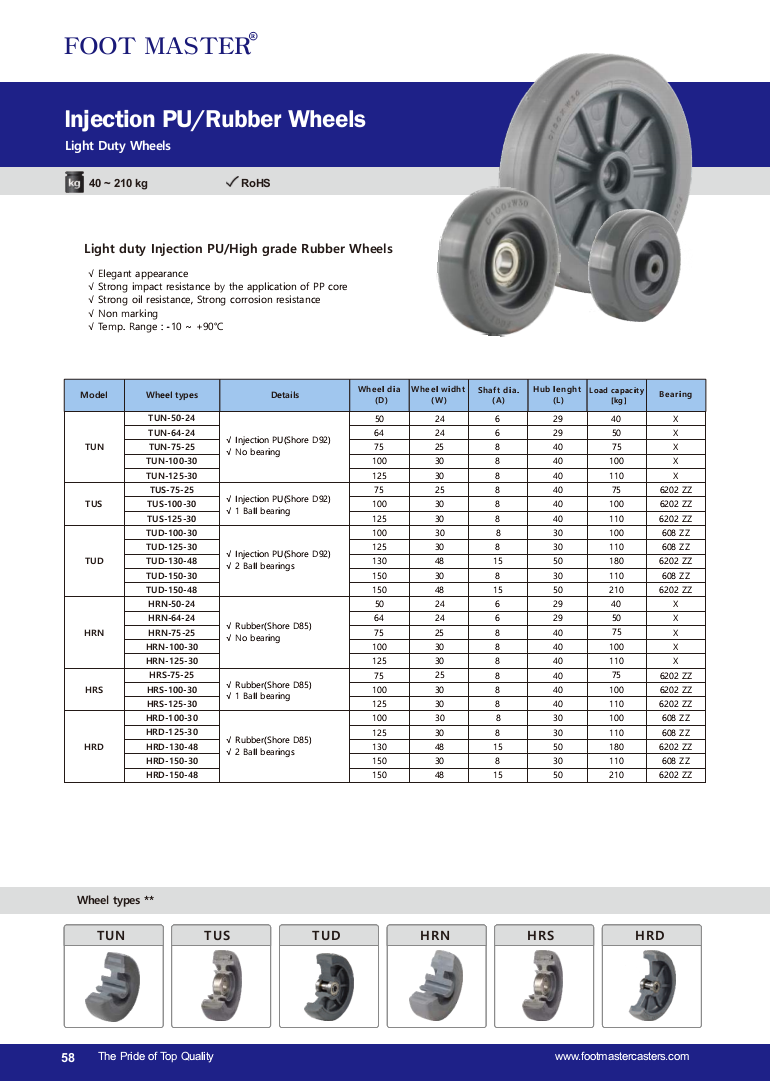 | Độ cứng của bánh xe | 90 ± 2 Bờ A |