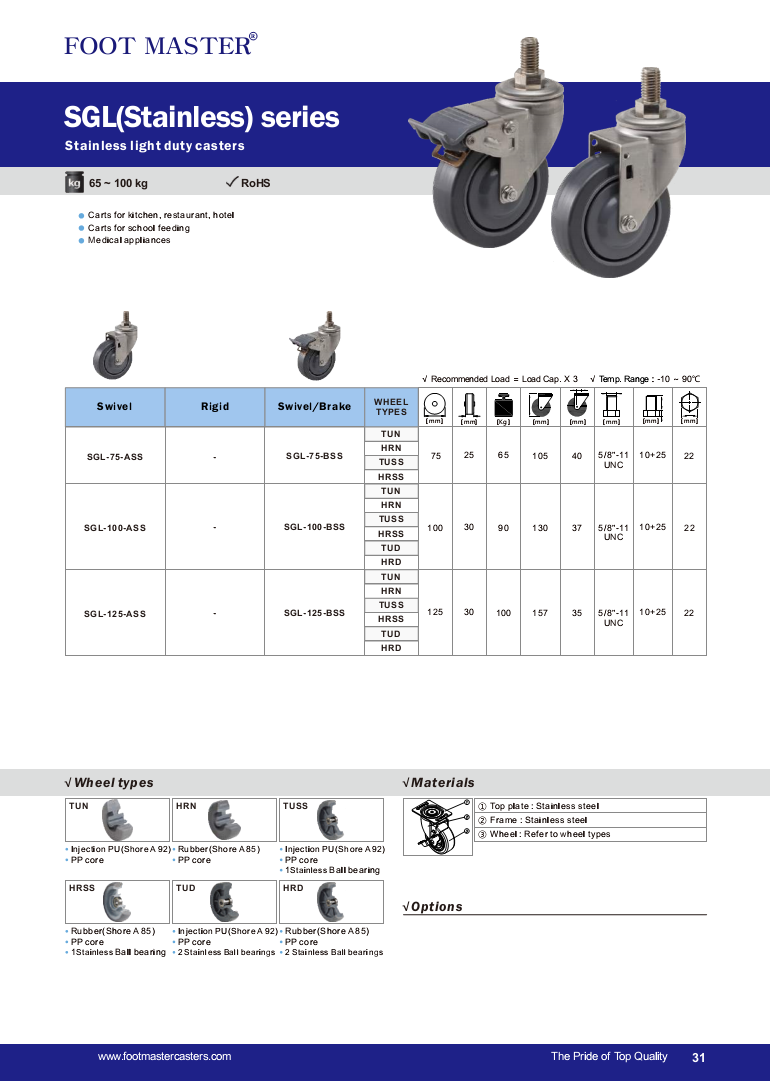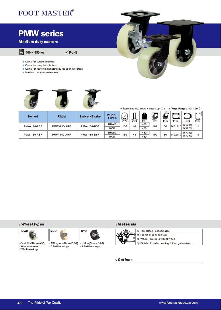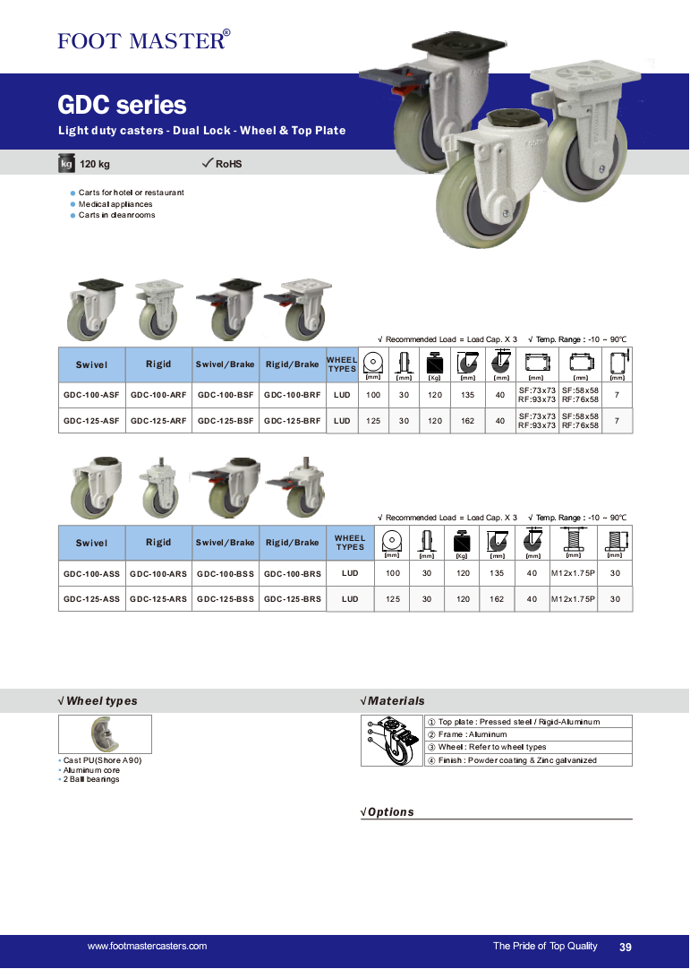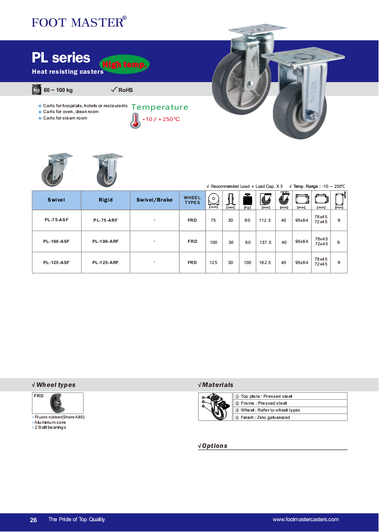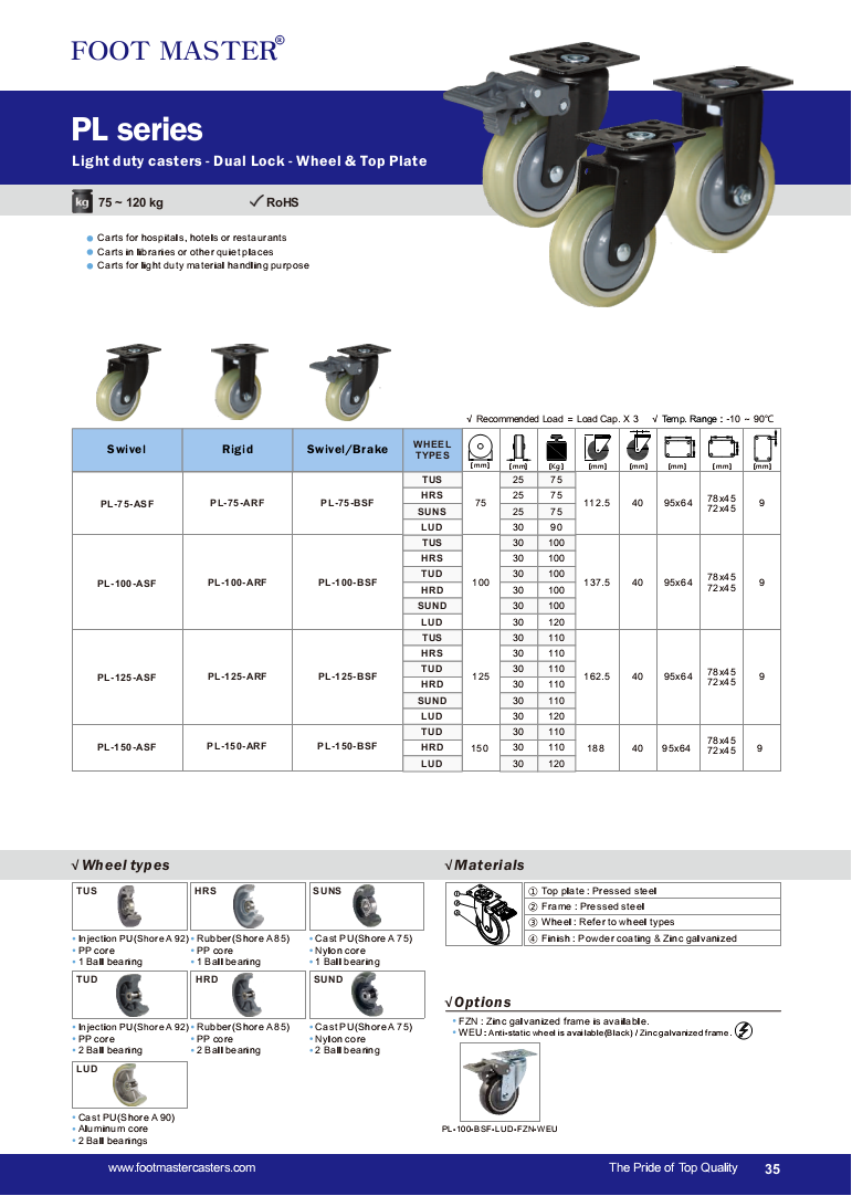 Bánh xe đẩy PL-100-ASF-LUD, PL-100-ARF-LUD, PL-100-BSF-LUD