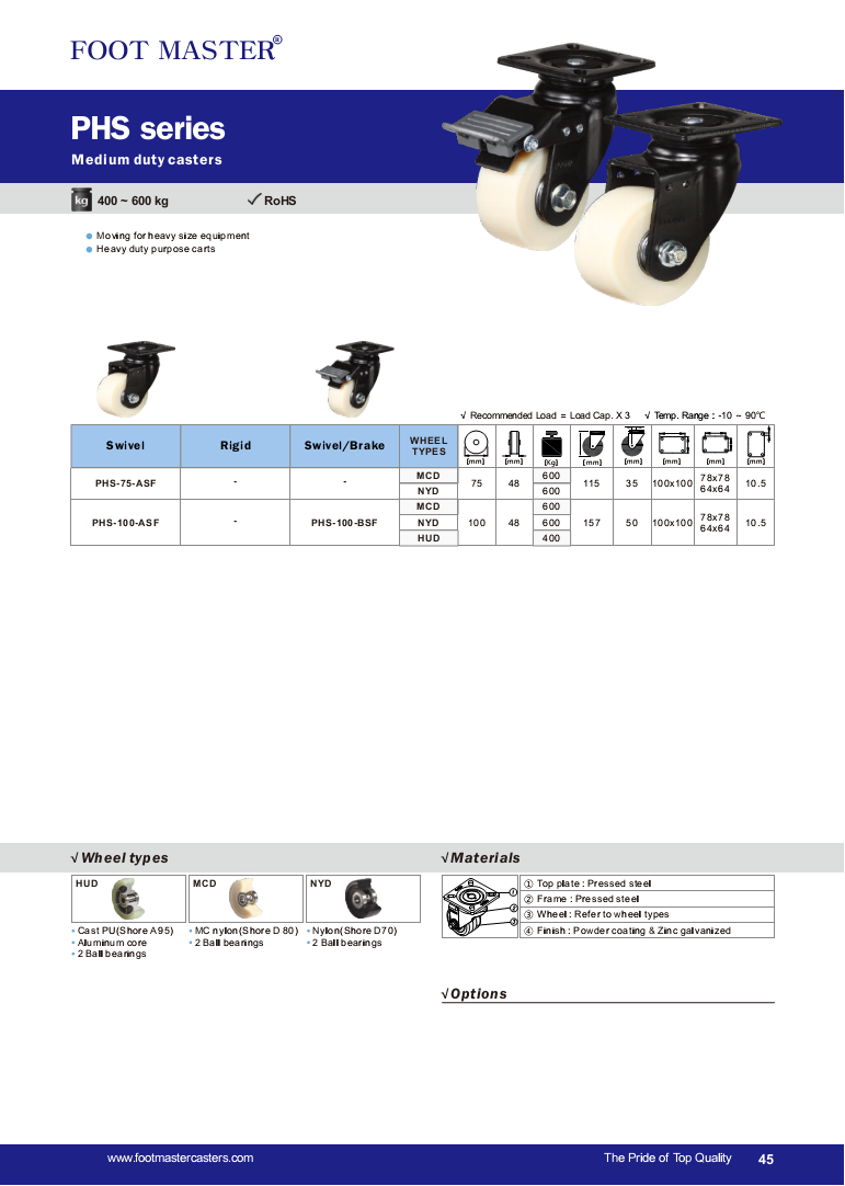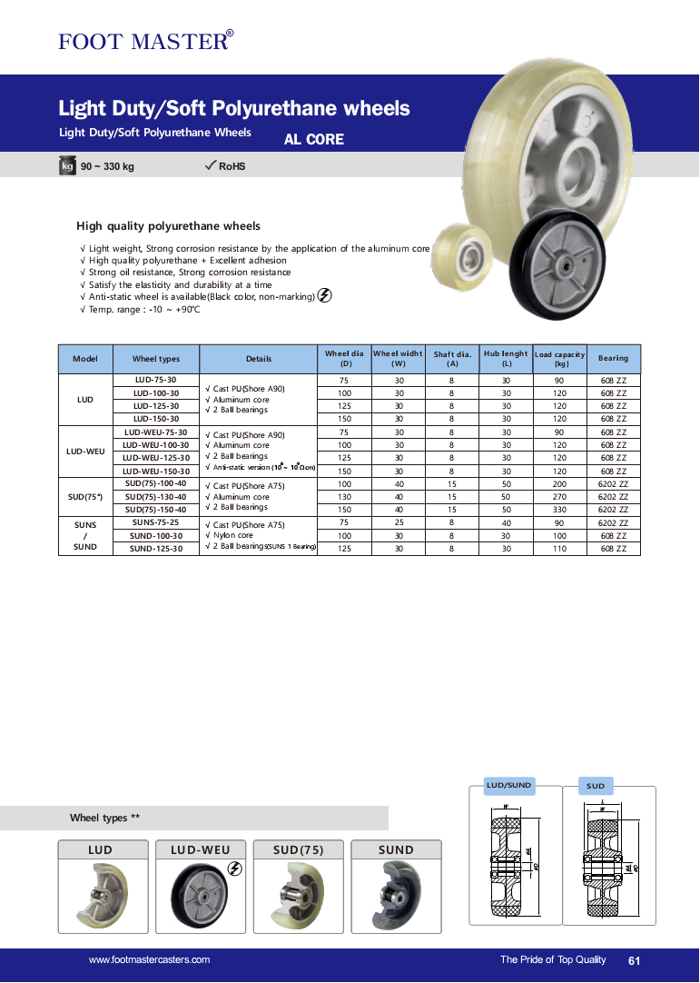 Bánh xe đẩy PL-100-ASF-LUD, PL-100-ARF-LUD, PL-100-BSF-LUD nhập khẩu chính hãng. Chất lượng cao, cung cấp với số lượng lớn, có bảo hành toàn quốc.