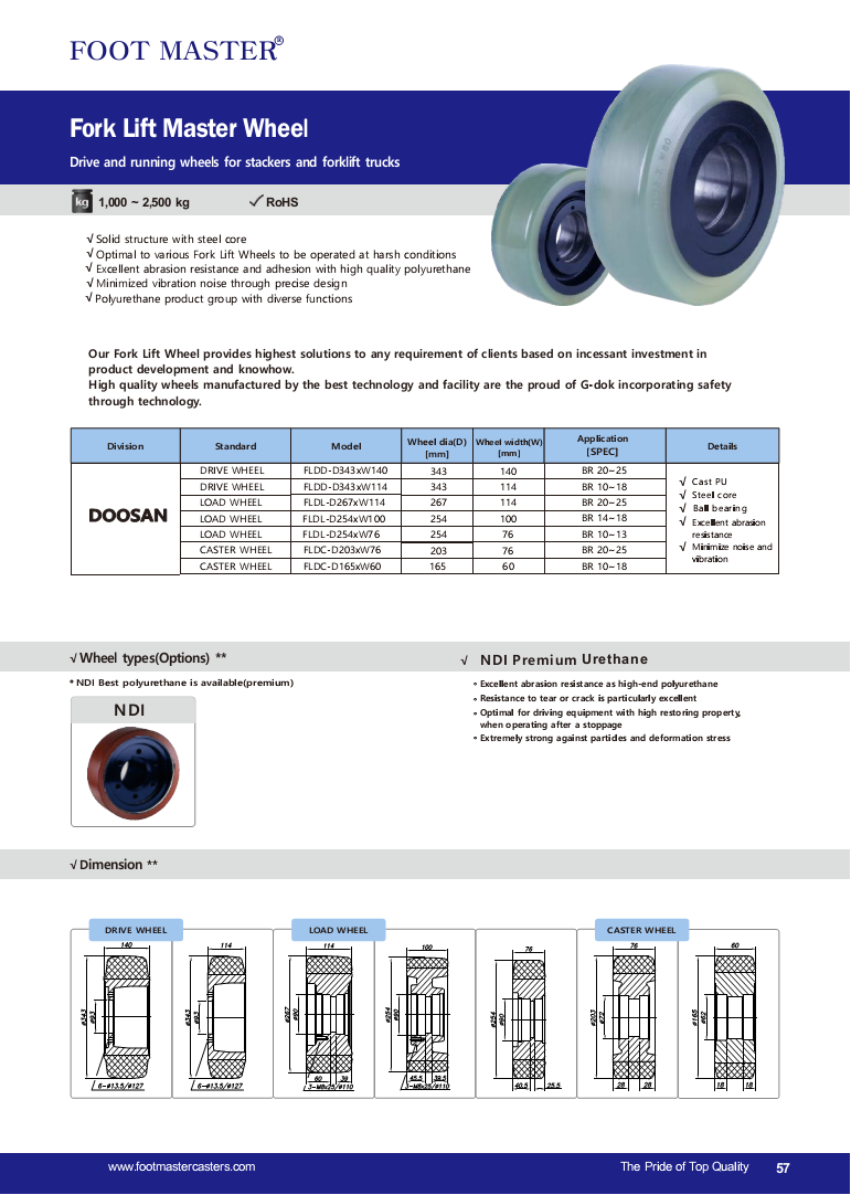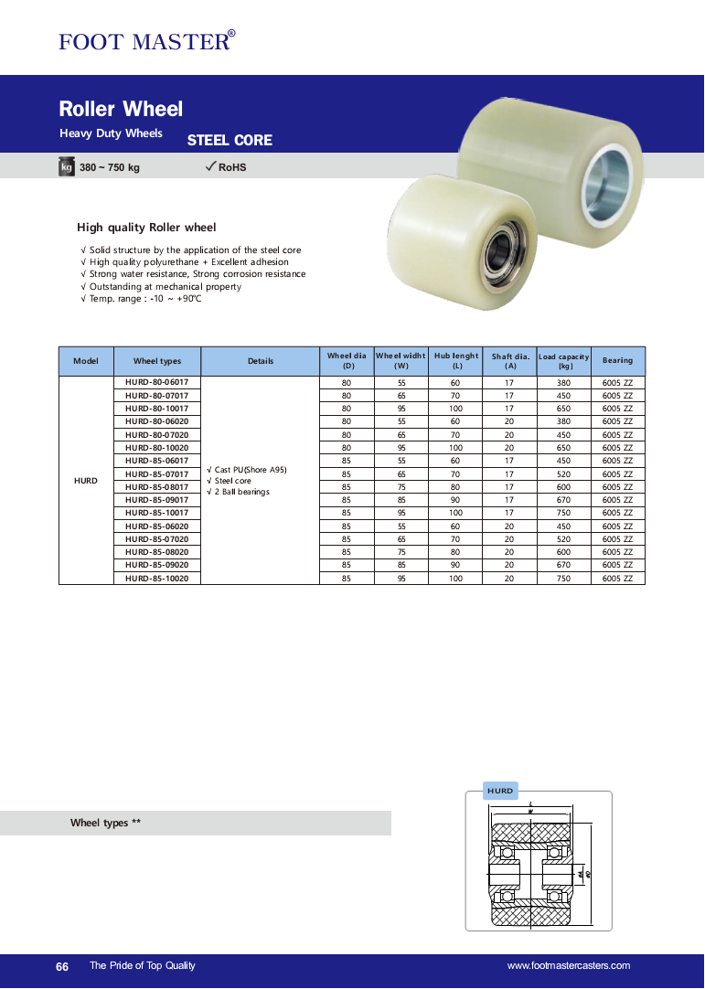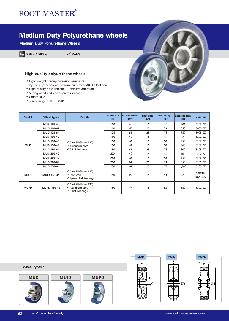 – Bánh xe: Lõi nhôm + khuôn uretan