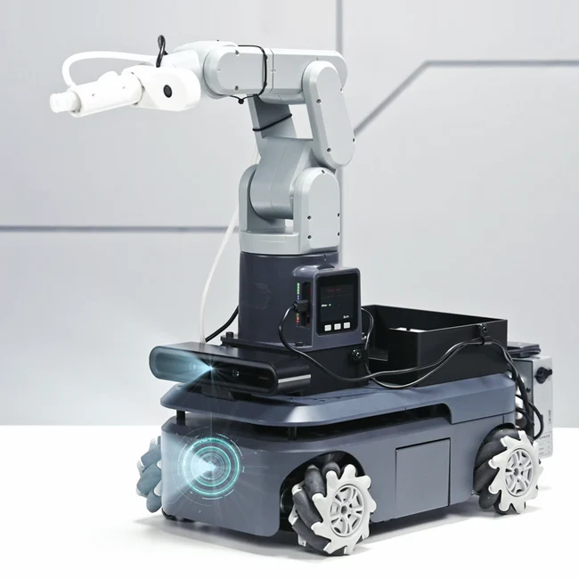 Dòng myAGV 2023 có thể kết hợp với 5 loại cánh tay robot khác nhau của công ty, tạo nên công thức: myAGV 2023 + cánh tay robot = Vô hạn khả năng. Với khả năng điều hướng tự động, thị giác máy và các đầu gắp linh hoạt, hệ thống có thể mô phỏng nhiều tình huống kinh doanh thực tế và đáp ứng yêu cầu của các dự án phức tạp. Thiết bị hỗ trợ các bộ kit robot hợp nhất, cho phép mô phỏng các tình huống logistics kho bãi và phân loại, phù hợp cho nghiên cứu thương mại và trình diễn robot hợp nhất trong môi trường ứng dụng.