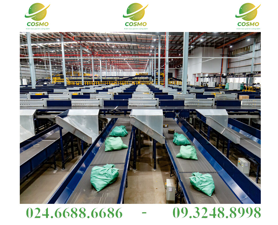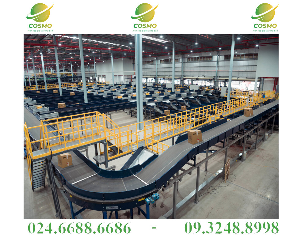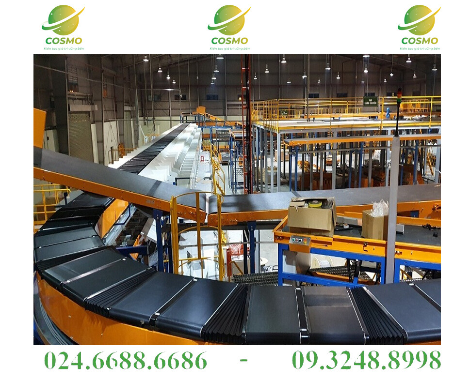 – Băng tải phân loại bưu kiện do COSMO thiết kế và lắp đặt theo yêu cầu của khách hàng, với khả năng phân loại và vận chuyển các loại bưu kiện theo từng mã code.