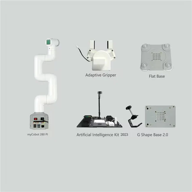 myCobot 280 Raspberry có thể tích hợp với bộ AI Kit, cho phép người dùng khám phá thị giác máy và khả năng phối hợp giữa cánh tay robot và hệ thống xử lý để thực hiện các tác vụ nhận diện và gắp vật thể.