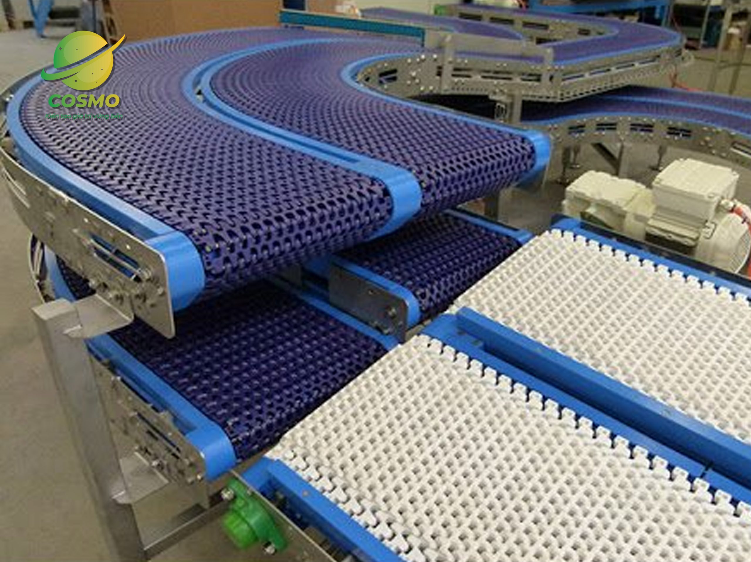 Hệ thống băng tải lưới có thể sử dụng trong điều kiện vận chuyển các sản phẩm nóng, lạnh, dầu trong lò,…Các điều kiện khác. Hệ thống băng tải lưới tại COSMO thường sử dụng trong các ngành thực phẩm và nhiều ngành công nghiệp khác.