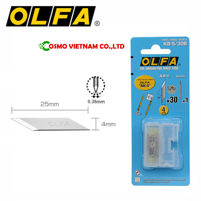 Xuất xứ: Nhật Bản Dùng cho dao bút OLFA AK-5, hộp 30 miếng. Nghệ thuật và Thủ công Blades Dao Lý tưởng cho nghệ thuật, đồ họa, hàng thủ công Người tiêu dùng và sử dụng công nghiệp Phù hợp với dao cạo Olfa Art AK-5 Đường kính 0.38mmx4mm