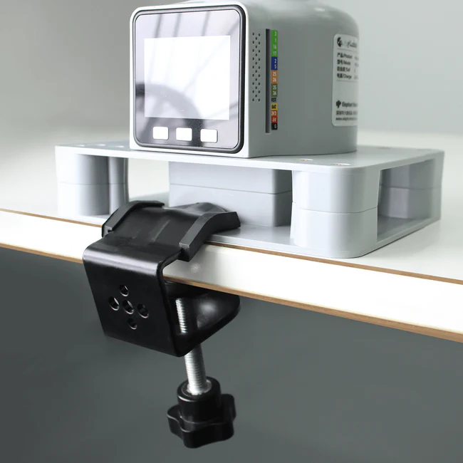 Đế hình chữ G có thể gắn ở mép bàn, giúp bạn tận dụng tối đa không gian và tăng tính linh hoạt khi thao tác.