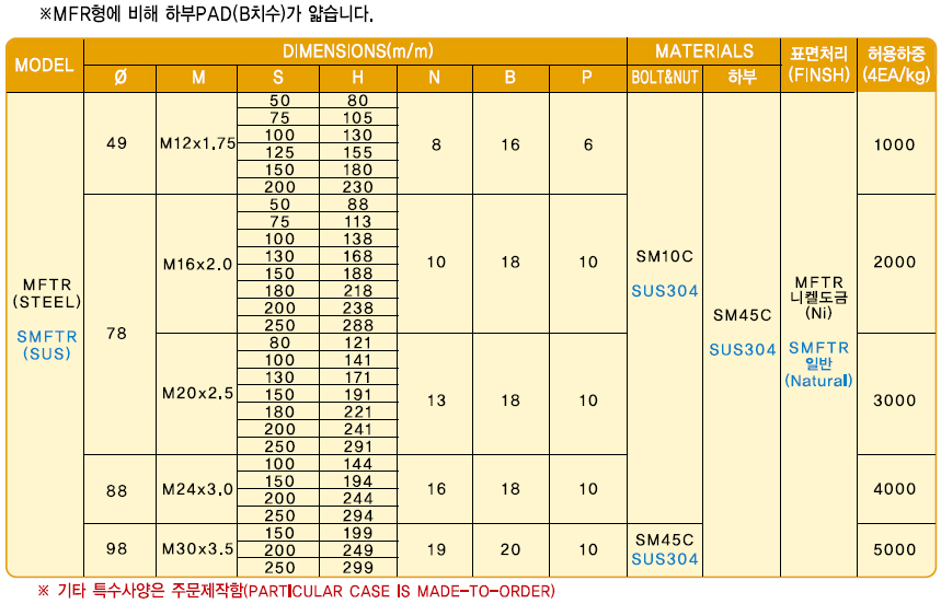 SMFTR78X16X150,SUS304,rubber pad M16-150L, 2000kg at4pc